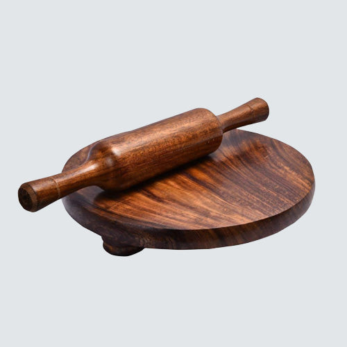 Round wooden roti maker. It is used to make a roti round by using belana.